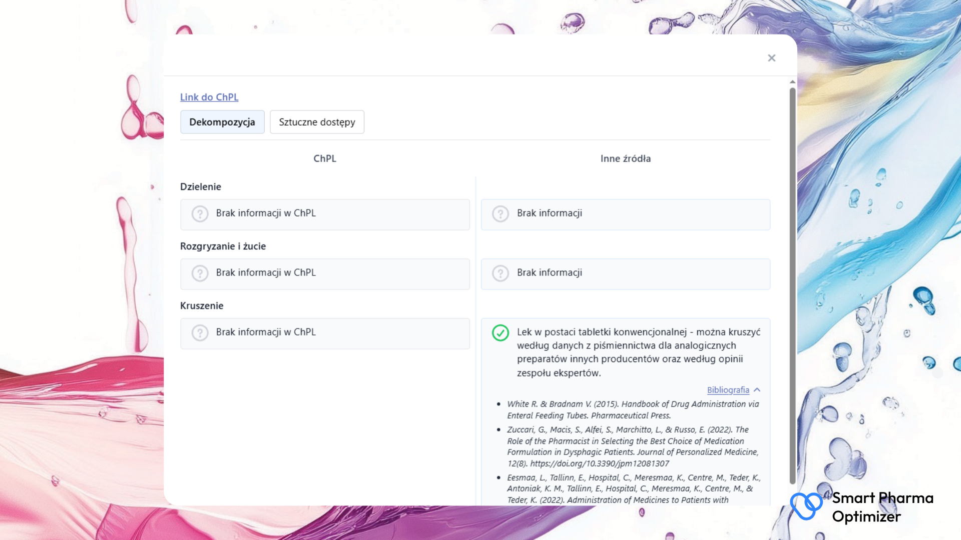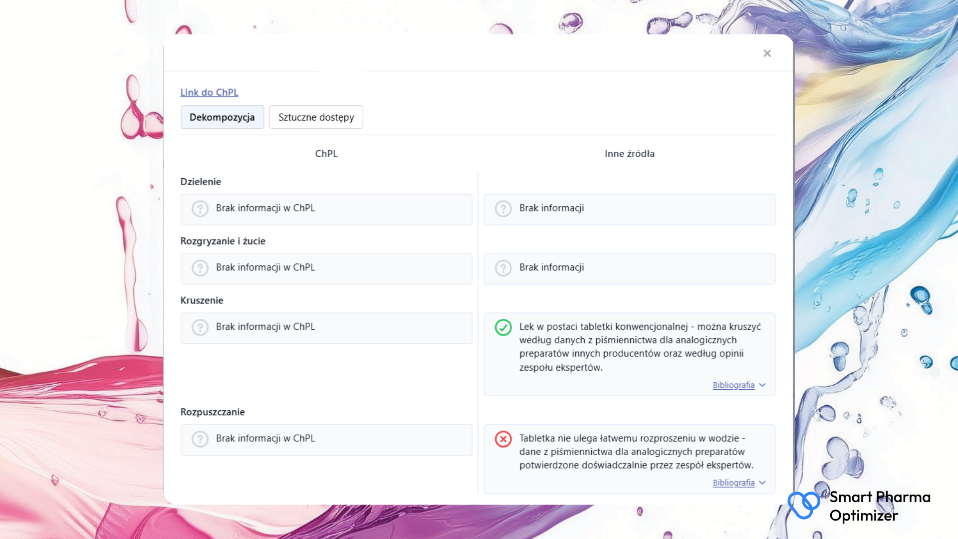 Wersja v2 to nasz krok milowy naprzód. Rozumiemy, że „brak danych” w ChPL nie może paraliżować pracy lekarza, pielęgniarki czy farmaceuty. Dlatego zagospodarowaliśmy ten trudny obszar, wprowadzając weryfikację ekspercką.
