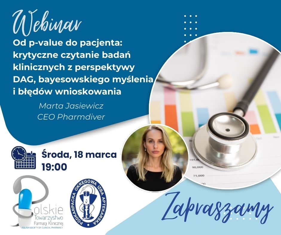 Mamy przyjemność zaprosić Państwa na wyjątkowe wydarzenie online, które poprowadzi Marta Jasiewicz, CEO Pharmdiver wraz z Członkami Polskiego Towarzystwa Farmacji Klinicznej oraz pod patronatem Podkarpackiej Okręgowej Izby Aptekarskiej.